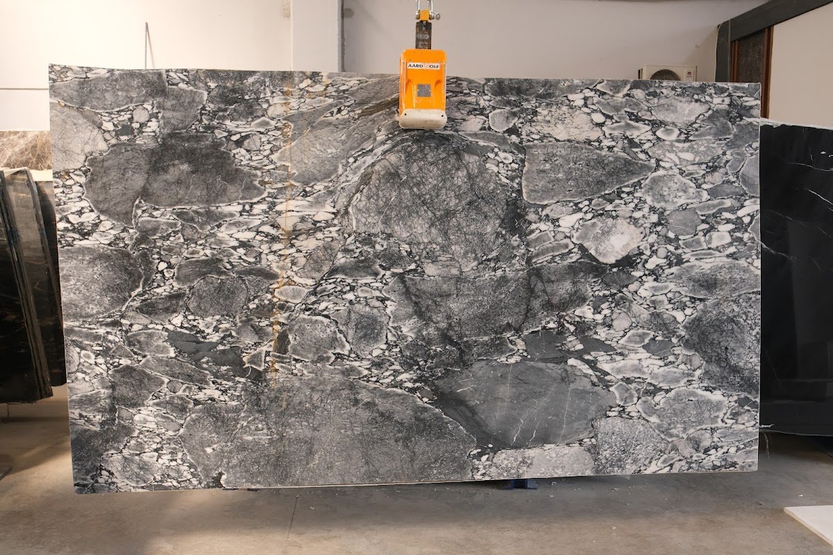 Blue Rain is one of the most visually captivating stones in our exotic collection. Its blue-grey base colour with flowing, rain-like vein patterns creates a dynamic, artistic surface that is truly one-of-a-kind.